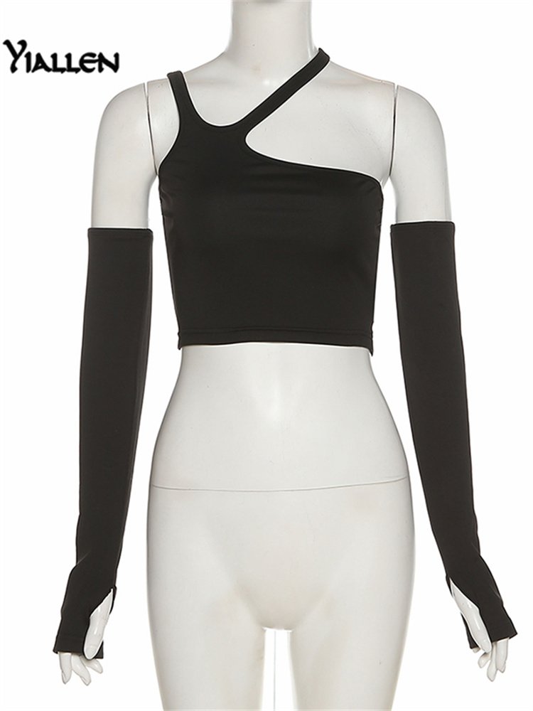 Yiallen Autumn Fashion Casual Slim Solid Removable Sleeves Halter T Shirt For Women New Streetwear Wild Basic Female Top Hot